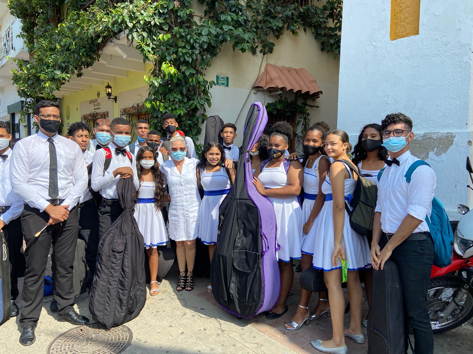 Cartagena de Indias, D. T. y C., 11 de noviembre de 2021. Los estudiantes de la Orquesta de la Institución Educativa de San Lucas fueron los encargados hoy del homenaje musical del evento de conmemoración de los 210 años de la Independencia de Cartagena.