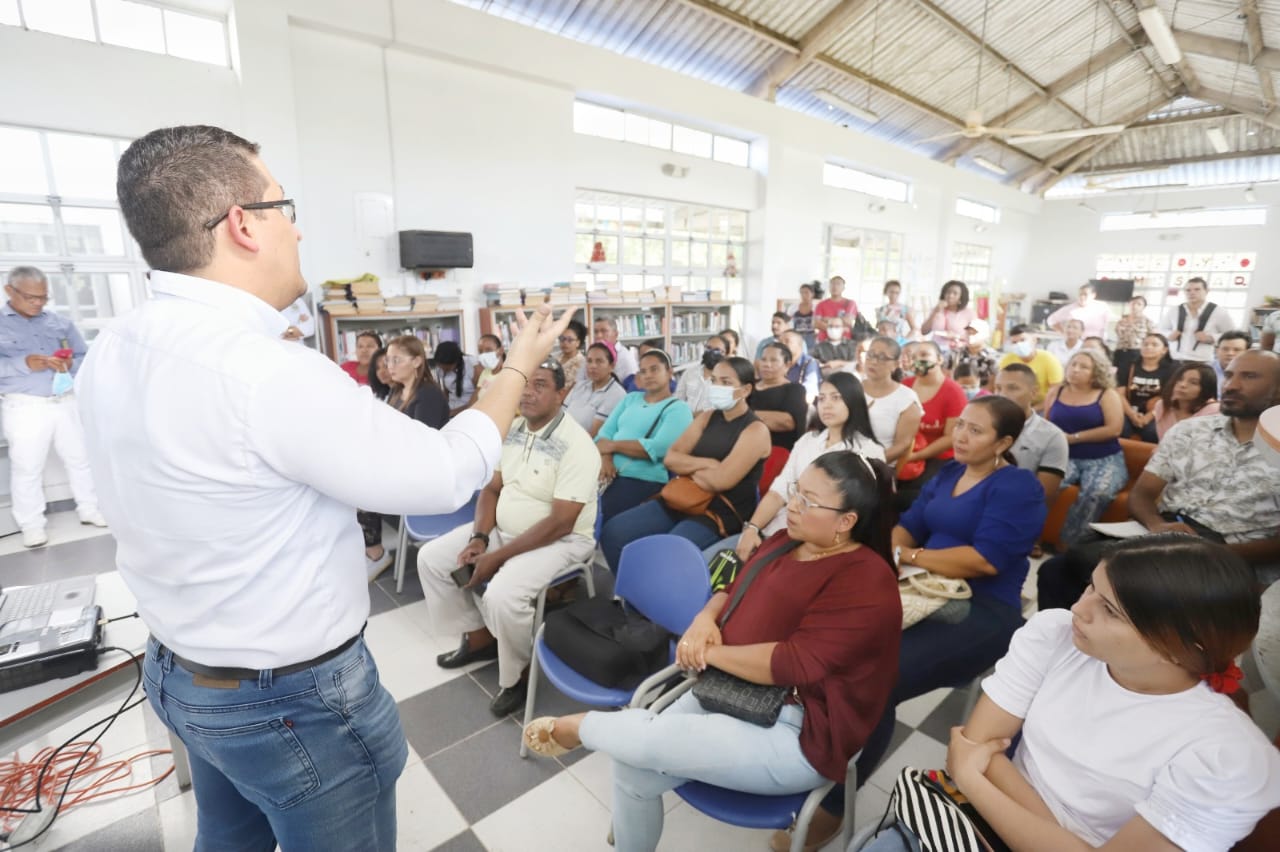“Con la comunidad nos reunimos para explicarles cómo va a ser el proceso de vinculación de nuestros docentes para llevar el servicio educativo a nuestras niñas, niños y jóvenes. Participaron integrantes de la Junta de Acción Comunal y posibles adocentes que serán formados para vincularse a través del nacional de contratación Sistema Maestro”, dijo Carrasquilla.