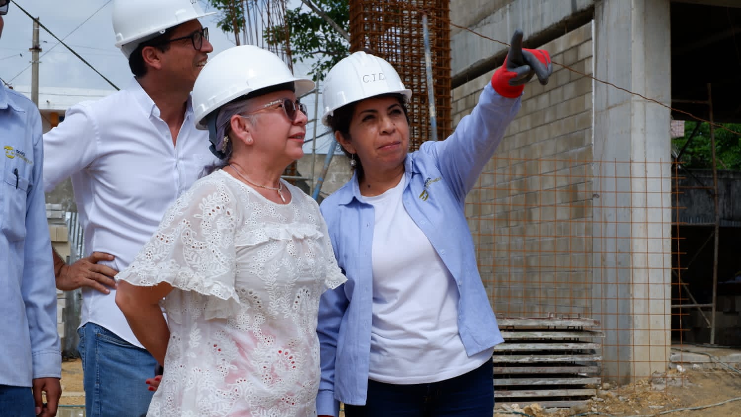 La titular de la cartera de Educación, celebró el levantamiento en concreto de los tres bloques, de cuatro que contempla esta imponente edificación, donde funcionarán los salones de clases que albergarán a unos dos mil niñas, niños y jóvenes de uno de los sectores más emblemáticos del barrio Olaya Herrera.