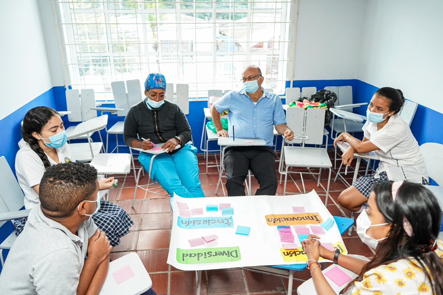En su recorrido para socializar el proyecto de Política Pública Educativa, la Secretaría de Educación llegó la IEO Cartagena del Mar, donde se reunió con profesores, estudiantes y directivos para conocer sus opiniones sobre los problemas de la educación en la ciudad.