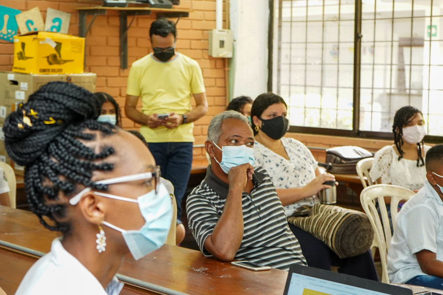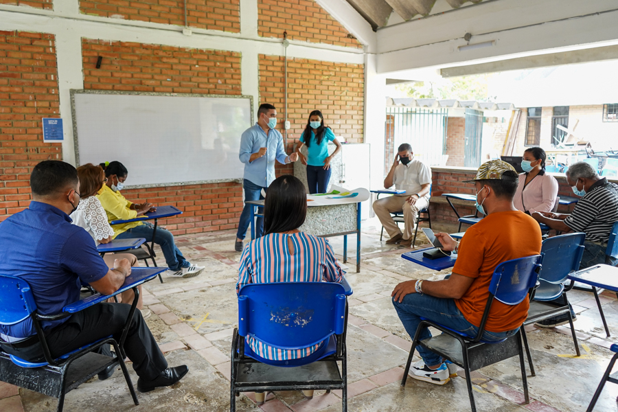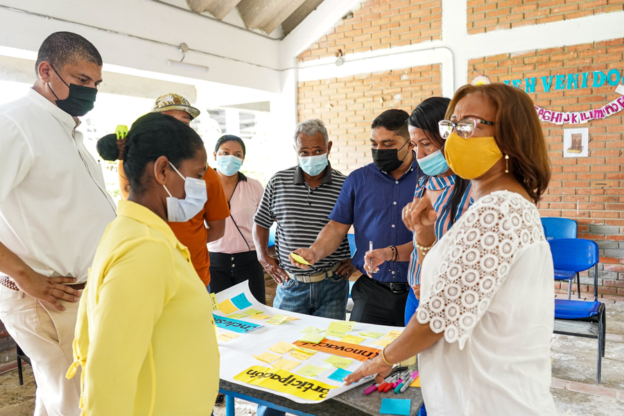La secretaria de Educación, Olga Elvira Acosta Amel, y sus directoras de Calidad y Cobertura, Bertha Iabel Bolaños y Alexandra Herrera, participaron en las mesas de cartografía social que se desarrollan en la etapa de alistamiento de la Política Pública Educativa de Cartagena. La actividad se desarrolló en la I.E. 14 de Febrero de El Pozón, y participaron niños, niñas, jóvenes, docentes, y líderes sociales, quienes están plasmando en estos ejercicios su escuela soñada y sus ideas de cómo mejorar el servicio que se presta en las mismas.